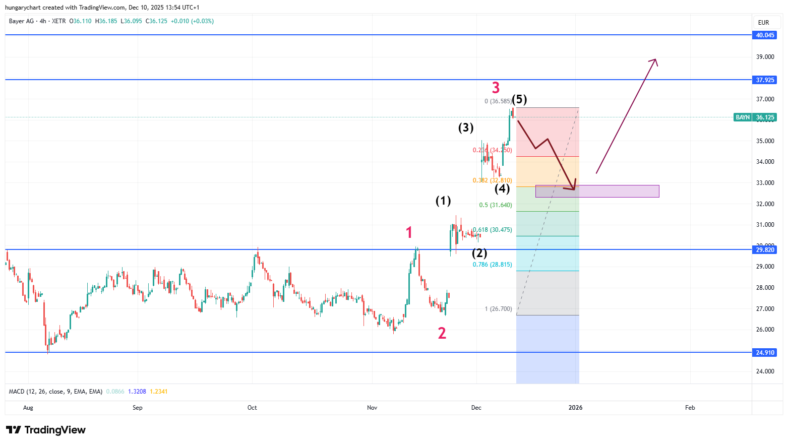 A Bayer hosszas esés után befejezte a lejtmenetet és elindult felfelé. A 30 eurós fordított fej-váll nyakvonalat áttörte és elindult a 40 körüli nagy rés betöltésére.