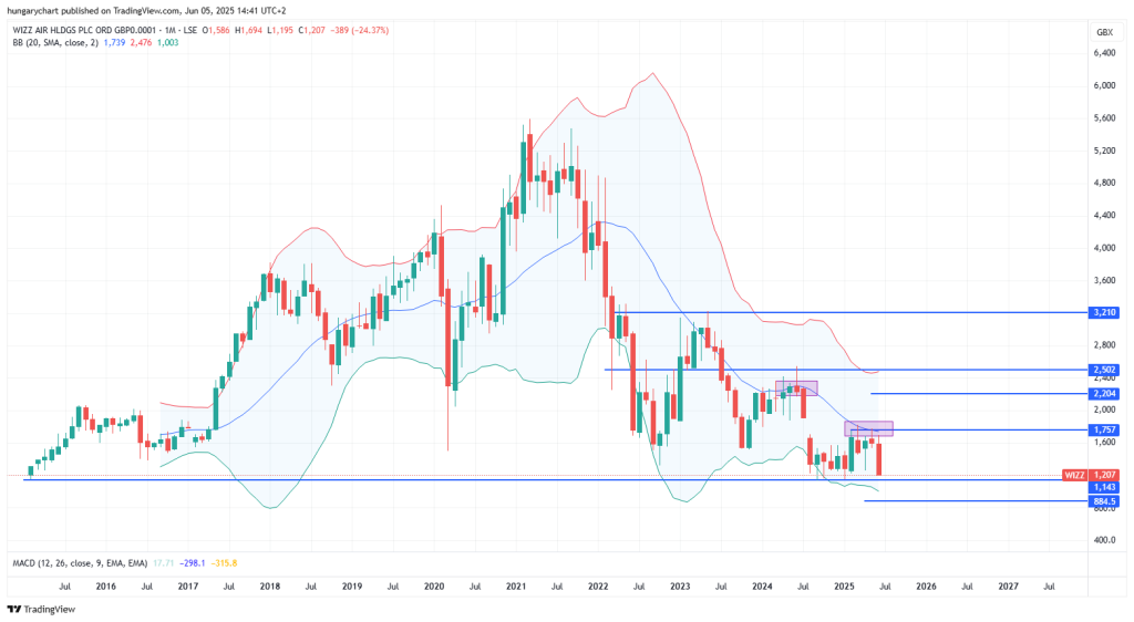 Haviban kezd nyílni a bollinger és ráadásul most is a közepéről fordult le kanócosan, mint tavaly nyáron. Akkor új mélypont következett. Viszont még nem esett el a sáv alja, ami 1135-ön van (penny-ben).